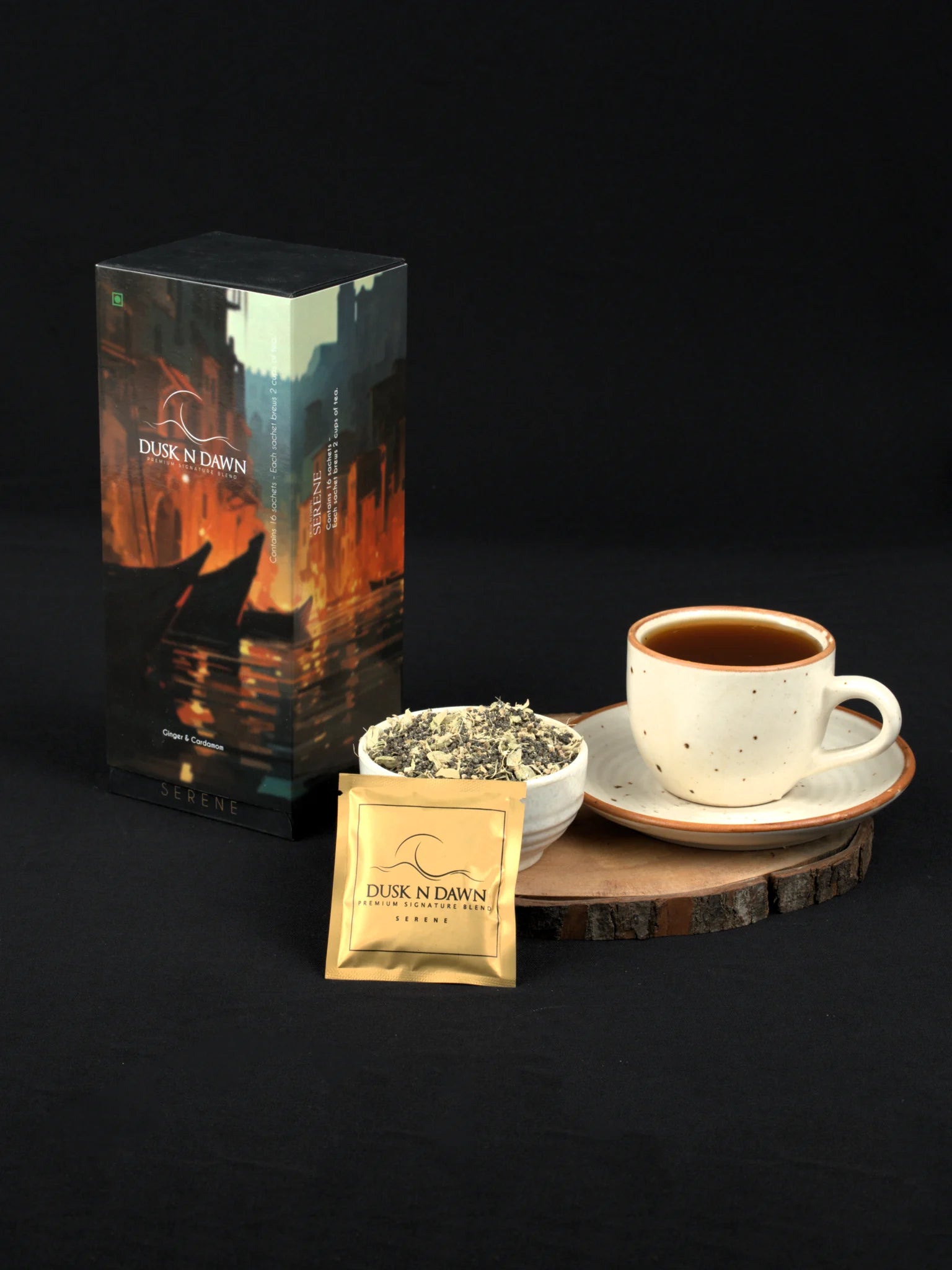 A soothing blend of premium tea leaves, cardamom, and dried ginger, Serene is crafted for moments when you want to slow down and breathe easy. Its gentle spice and warm aroma create a sense of balance, making it the perfect companion for quiet afternoons or reflective evenings.